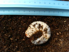 | 2007.10.17 | 前回のマット追加後、幼虫の動きが全く確認できなかったので、少し掘って確認したら少なくても大きい幼虫2匹を確認できた。フンは少なめだったので涼しくなって活動量が低下したのかも。 | |