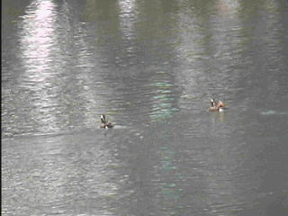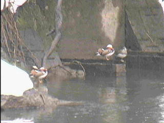 も、ちょっと近くまできてほしいな。きれいな羽根のオシドリ君。
