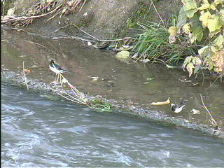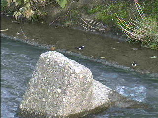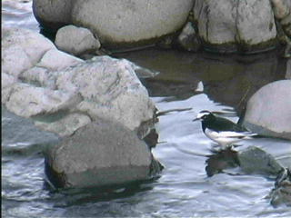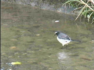 | (広辞苑より) せぐろ‐せきれい【背黒鶺鴒】 セキレイの一種。大きさはスズメぐらい。 おおむね体の上面は黒、下面は白。 通年、河原に生息、日本特産。 |